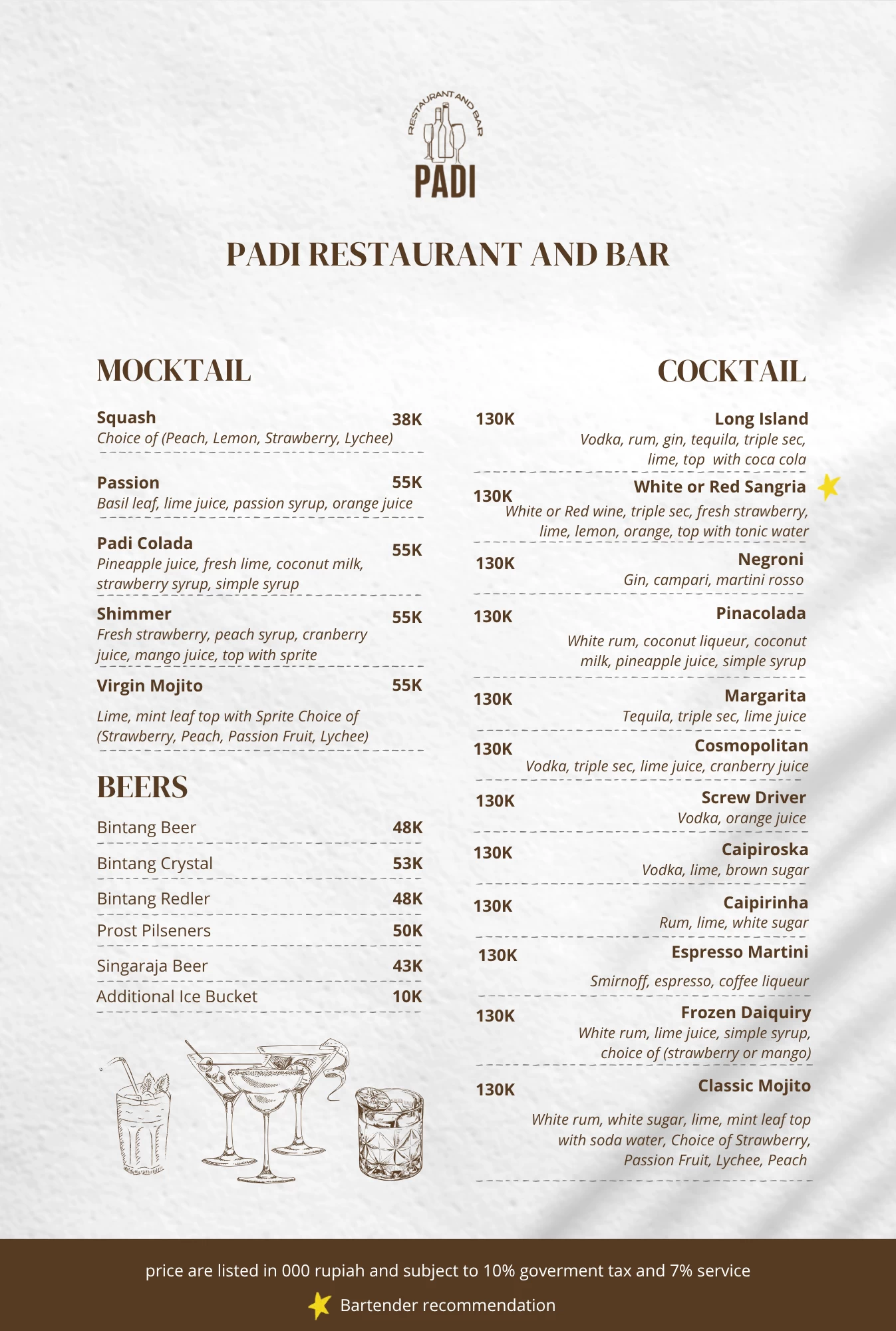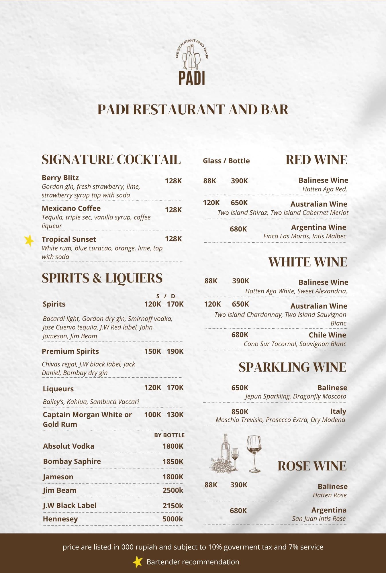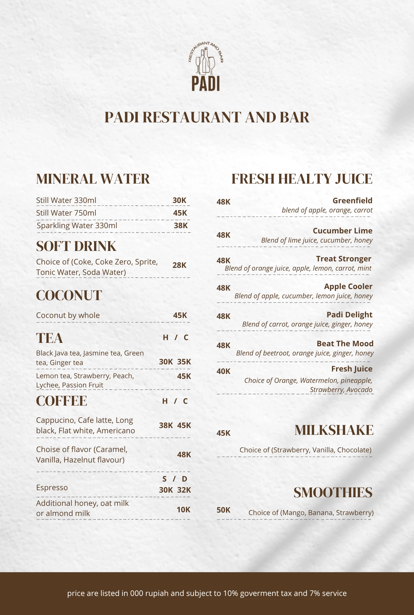 Where vibrant flavors meet stunning rice field views. Savor a curated menu of local and international dishes, crafted with fresh, high-quality ingredients. Whether you’re here for a laid-back breakfast, a sunset cocktail, or a romantic dinner under the stars, Padi offers the perfect blend of taste, ambiance, and tropical charm.