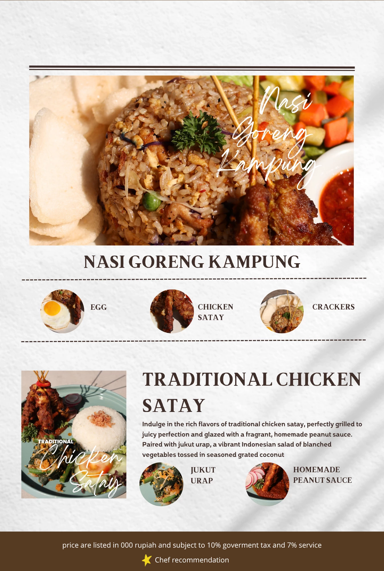 Known for its tranquil ambiance, offering guests a picturesque view of the surrounding rice fields. The establishment combines traditional Nusantara architecture with modern design elements, creating a cozy and inviting atmosphere.